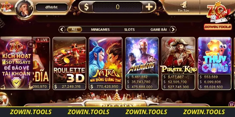 • Người chơi đăng ký ZOWIN có thể khám phá một kho tàng game phong phú bao gồm các thể loại như game bài, mini game, cá cược thể thao,…